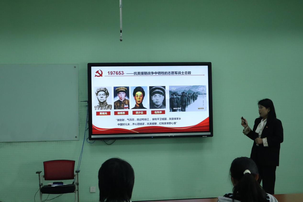 为深入做好新生入学教育,进一步激发团员青年的民族自豪感和责任感,厚植家国情怀,10月27日,我院临床药学(中外合作办学)25213202组织开展了“抗美援朝纪念日”的主题团日活动。25213202班全体成员、辅导员刘瑞环老师参加此次活动。