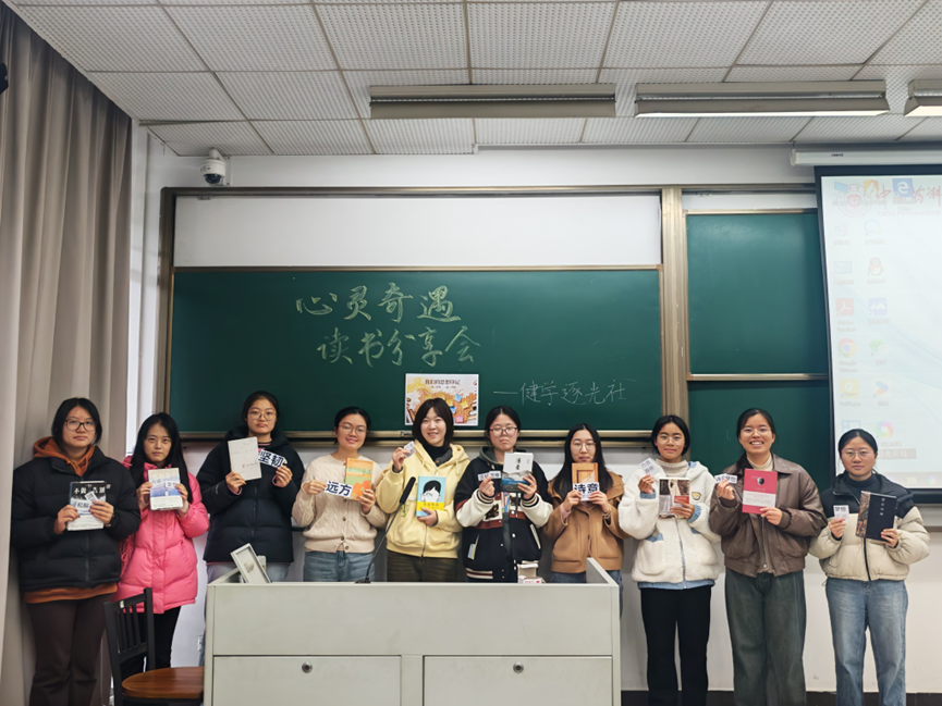 为深入营造“好读书、读好书”的健享团队文化氛围,缓解成员学业压力,滋养心灵成长,11月中下旬,“2213101健学逐光社”在江宁校区教学楼举办“心灵奇旅”主题读书分享会,健享项目全体成员参加此次活动。