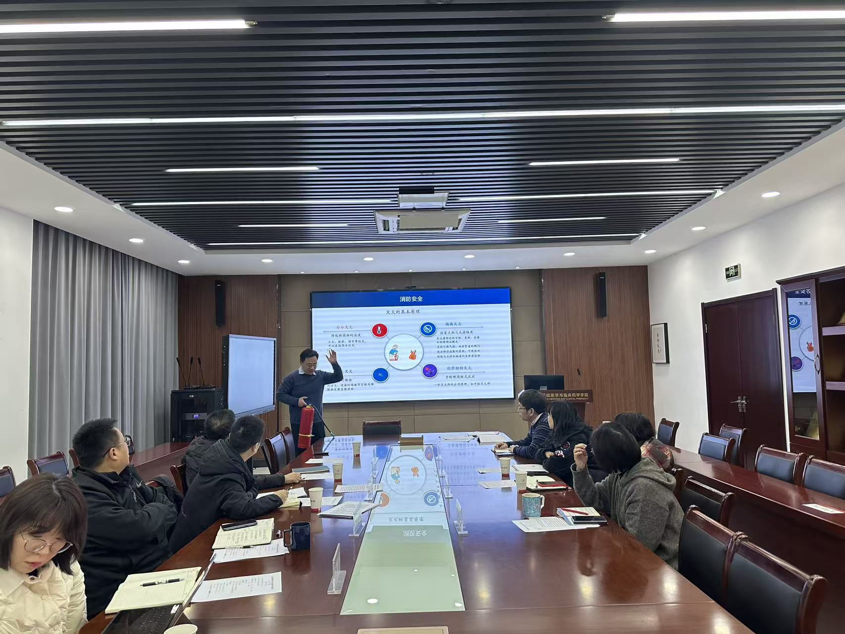 为进一步增强师生消防安全意识,提升应急处置能力,1月7日,基础医学与临床药学学院在江宁校区医学楼102会议室召开第三期“领航”大讲堂。学院领导班子、辅导员、参加会议。会议由院党委书记徐明主持。