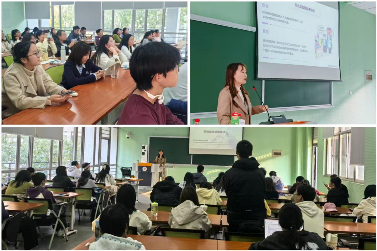 讲座现场,刘雯雯结合临床药学专业学生的专业特色和自身工作经历,从药品的生命周期讲起,系统解析药物临床试验I-IV期核心流程,详细解读了CRC、CRA等关键角色的职责,展望了职涯发展和行业前景,并基于医药行业特性,指导学生构建“技术+管理”双通道发展路径,助力精准定位职业方向。她鼓励毕业生们先就业再择业,通过不断知识沉淀、主动拥抱变化,用“择一事终一生”的态度投入工作。在互动环节,同学们踊跃提问,围绕“CRA职业发展天花板”“药学专业如何切入AI药物研发赛道”等热点话题展开讨论。主讲人结合行业案例,逐一解答,现场气氛热烈。