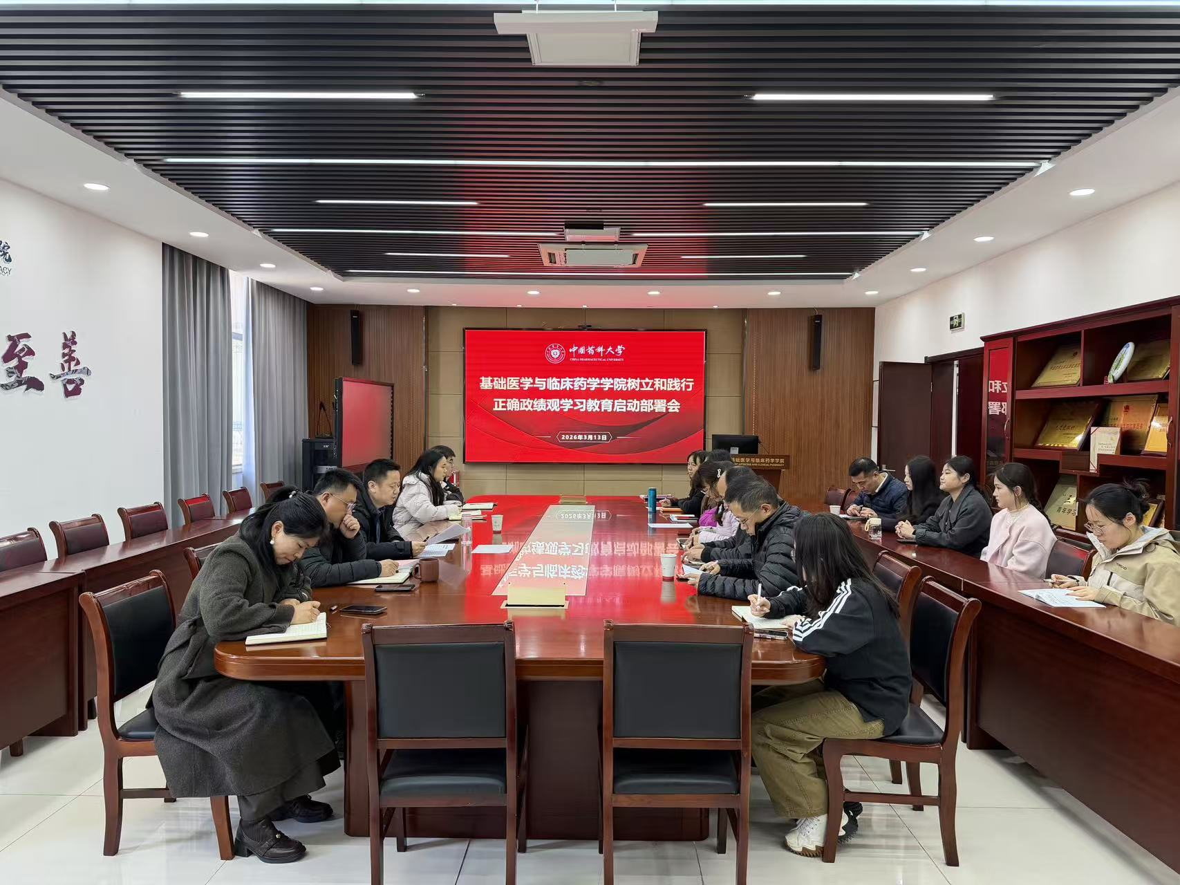 3月13日上午,基础医学与临床药学学院在江宁校区医学楼102会议室召开树立和践行正确政绩观学习教育启动部署会。学院领导班子、党委委员、党支部书记参加会议。组织部副部长杨波列席会议,会议由党委书记徐明主持。